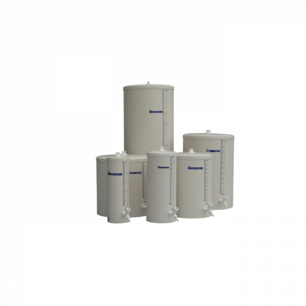Barrilete PVC rígido com tampa e fundo em PP, possui tampa para inserção de mangueira. Indicado para armazenamento de água destilada, água quente, água fria e reagentes inertes, oferecendo segurança e sem riscos de contaminação.
